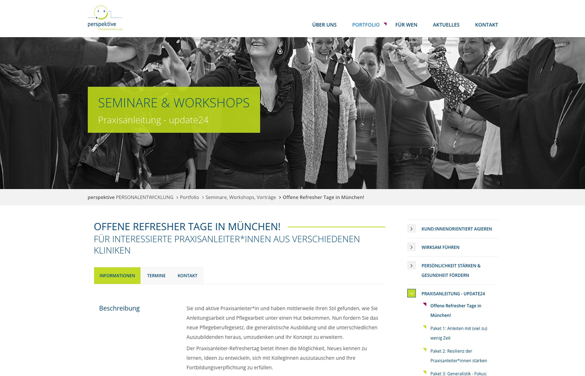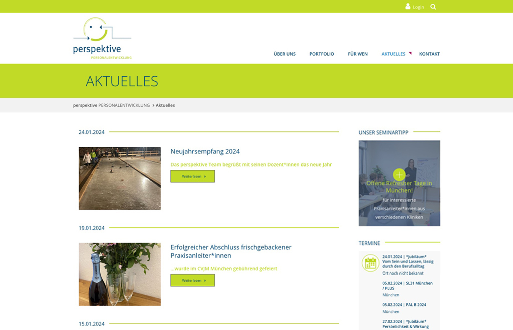 Dafür werden auf der Webseite oft eigene Bereiche geschaffen, in denen die einzelne Veranstaltung gezielt beschrieben wird und oft auch mit SEO-Maßnahmen begleitet oder Google-Ads Kampagnen beworben wird.