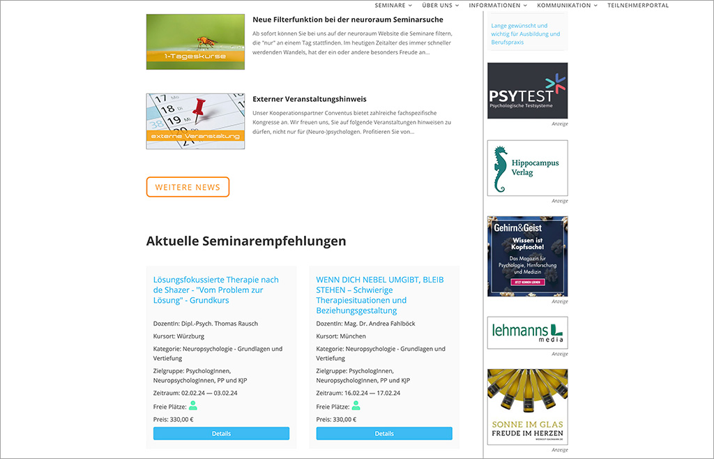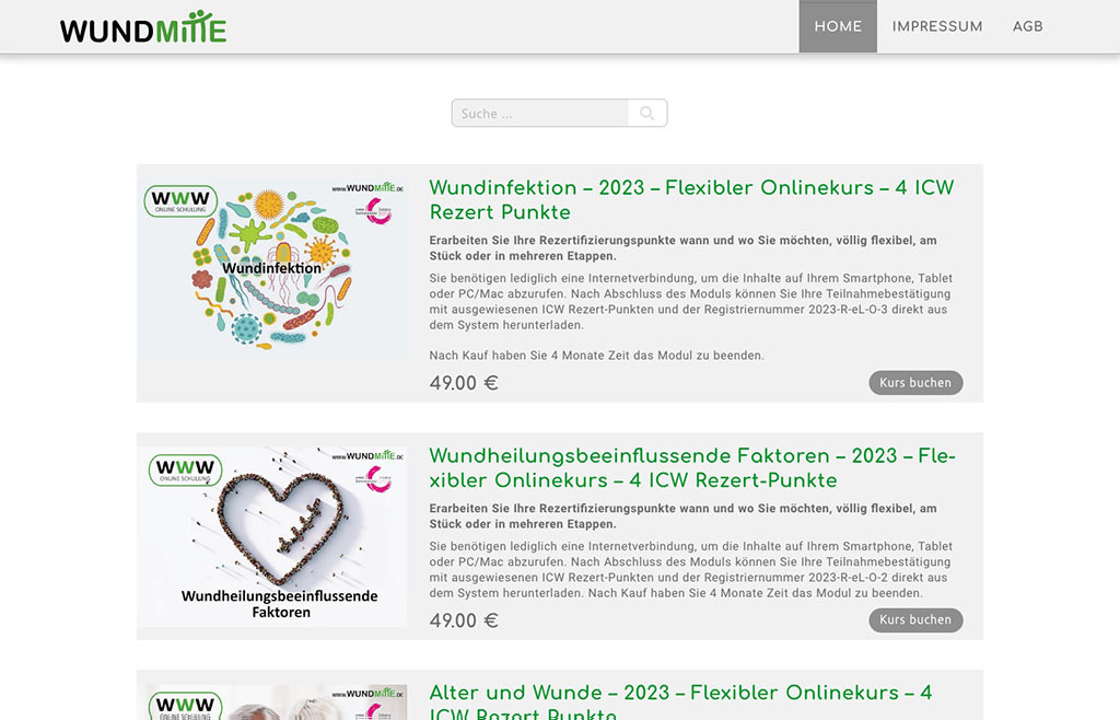 Sehen Sie hier ein paar Beispiele, wie unsere Kunden Ihre in SEMCO angelegten Kurse auf ihrer Webseite gezielt in Ihrem Wunschdesign veröffentlichen.