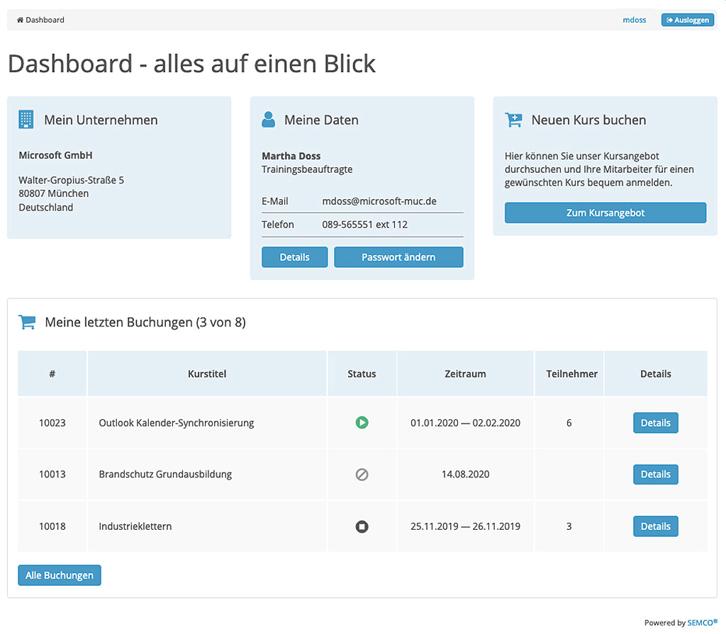 Ins­be­son­de­re, wenn man­che Ihrer Geschäfts­part­ner oder bestimm­te Teil­neh­mer immer wie­der Schu­lun­gen bei Ihnen buchen, macht der Ein­satz von Por­ta­len defi­ni­tiv Sinn.